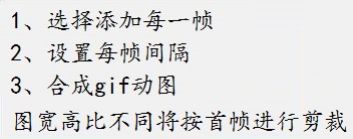 逐个选择每张图片作为动图里的每一帧,通过合成生成gif动图。所生成gif动图的宽高比由第一张图片决定,其他图片若宽高 比不同,默认情况下将放缩后居中显示该图,因此请使用宽高比接近的图片生成动图,或者图片插入前在本程序中进行放缩拖曳以取得更好的显示效果。