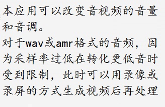 音调受声音采用率的限制,录音格式为amr和wav,往往采样率过低而不能转化为更低的声音。可以采取录像或录屏的方式得到 音频采样率适中的视频文件,从而转化更低音。